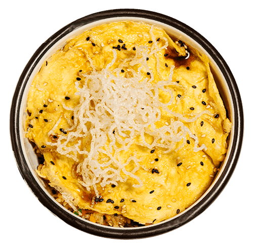 Arroz frito a nuestro estilo, con pollo, vegetales, tortilla y salsa taré ¡Otra cosita!